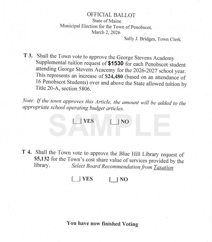 Sample Ballot for 3/2 Voting